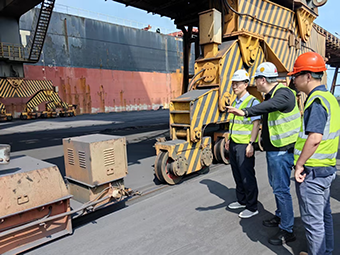 黃生湘一行還深入關(guān)丹港客戶現(xiàn)場,搜集用戶對設(shè)備使用情況的反饋,了解二期項目的進展情況。同時,向客戶介紹了華新機電發(fā)展現(xiàn)況,并且向客戶推介了華新機電的新產(chǎn)品。