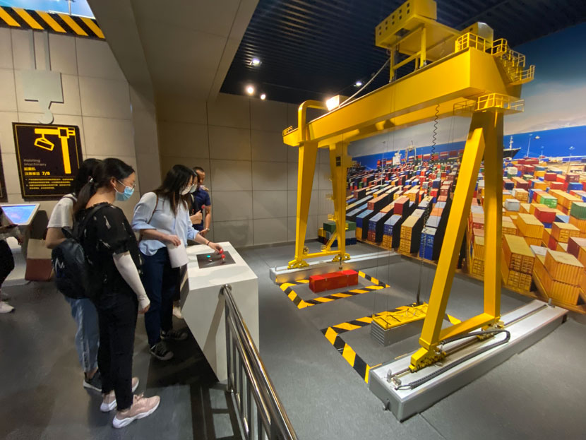 參觀特檢院展館,認(rèn)真聆聽講解員介紹起重機行業(yè)歷史,操作館內(nèi)模型。