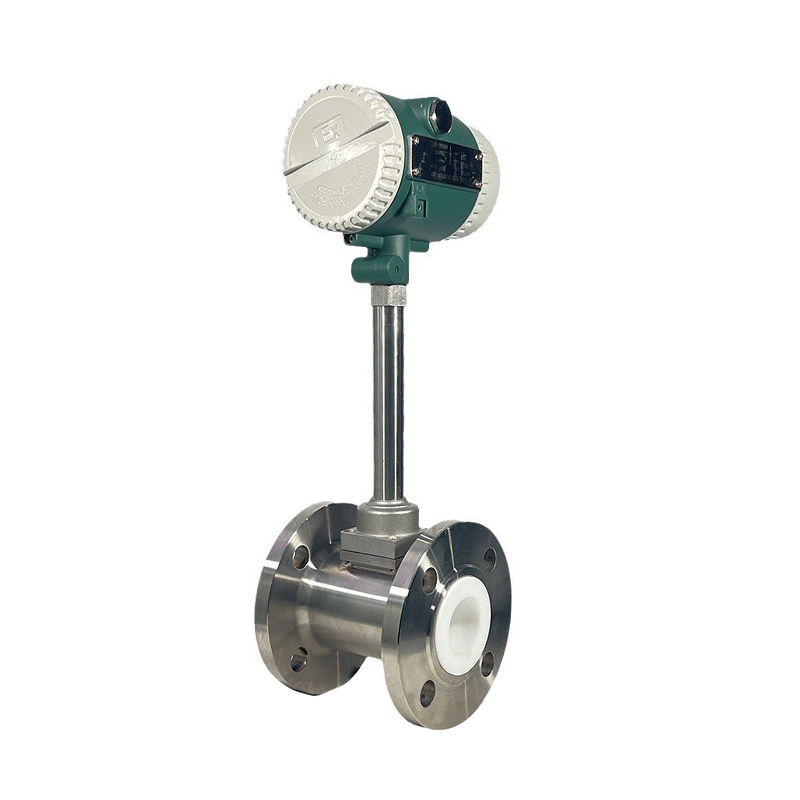 渦街流量計是根據(jù)卡門(Karman)渦街原理研究生產(chǎn)的測量氣體、蒸汽或液體的體積流量、標況的體積流量或質(zhì)量流量的體積流量計。主要用于工業(yè)管道介質(zhì)流體的流量測量,如氣體、液體、蒸汽等多種介質(zhì)。廣泛應用于化工,食品,供熱,電力等行業(yè)。其特點是壓力損失小,量程范圍大,精度高,在測量工況體積流量時幾乎不受流體密度、壓力、溫度、粘度等參數(shù)的影響。無可動機械部件,并且采用壓電應力式傳感器,因此可靠性高,維護量小,能長期穩(wěn)定使用。有模擬標準信號,也有數(shù)字脈沖信號輸出,容易與計算機等數(shù)字系統(tǒng)配套使用,是一種比較先進、理想的測量儀器。