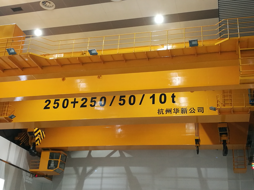 公司設計制造的所有橋機及門機的起升小車系消化吸收國外先進技術,結合我國當時的配套水平,綜合研究院多年的技術研制經驗,遵照GB/T3811-2008《起重機設計規(guī)范》、GB/T14405-2011《通用橋式起重機》等標準,同時參照國外有關起重機標準及歐洲搬運協(xié)會主流橋式起重機機型研制而成,節(jié)能減排,經濟環(huán)保,特別適合地下廠房、新型工廠及大噸位貴重物件的吊裝、搬運就位工作。公司首臺臺橋機為1990年研發(fā)、1992年投入生產的寧波北侖電廠80/20t橋式起重機,公司首臺臺門機為1994年向富春江發(fā)電廠提供的2×20t尾水門機。近三十年的發(fā)展,已向國內外眾多優(yōu)質客戶提供千余臺橋機和門機設備,是目前業(yè)內最先進、最成熟的低凈空小車結構。目前制造過的單小車橋機最大額定起重量為800t,雙小車橋機最大額定起重量為500t+500t,具備1500噸橋機的設計制造能力;制造過的門式起重機最大額定起重量為900t的造船龍門吊。